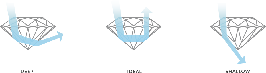The “ideal” proportions (depth and width) of diamonds varies with the different shape of the diamonds.
