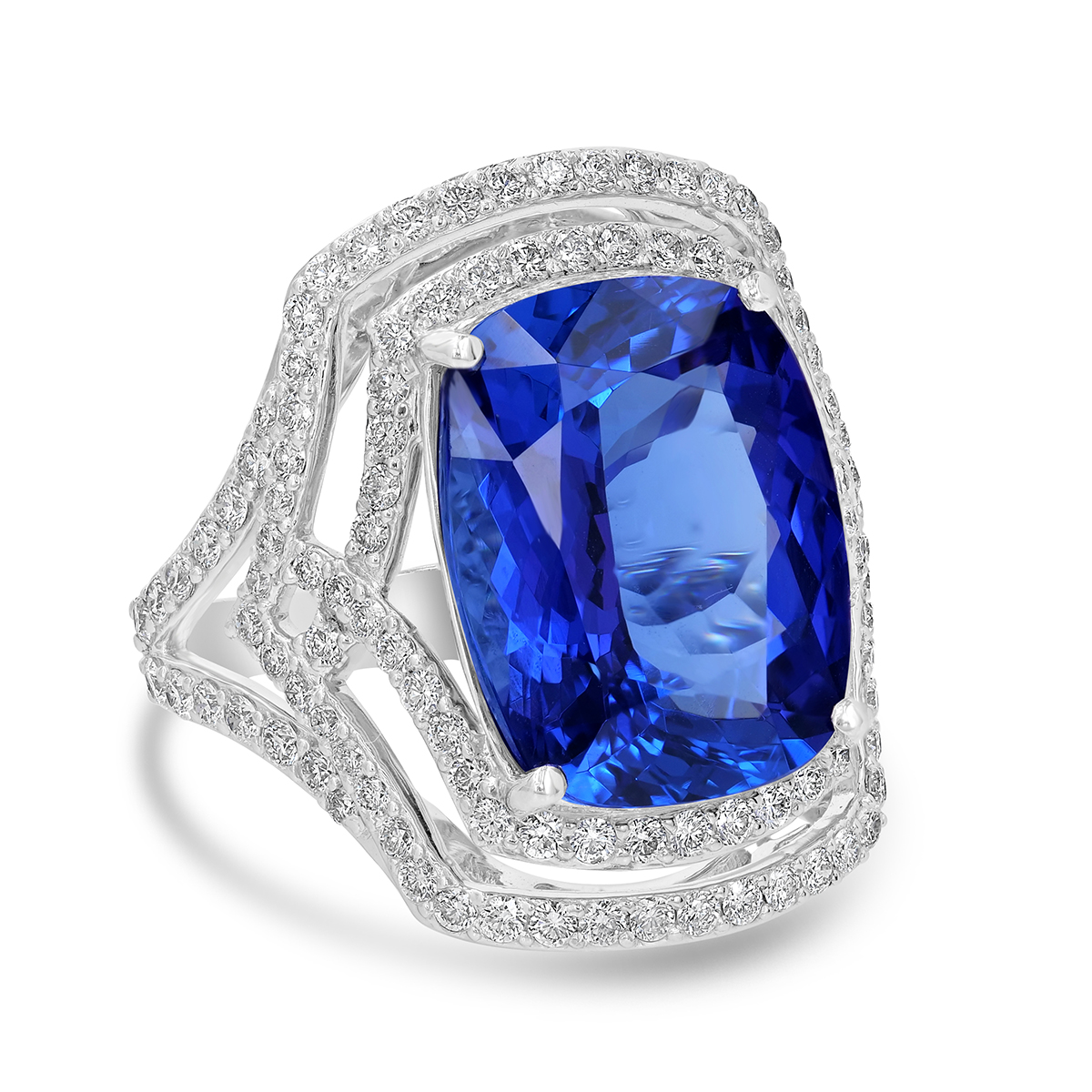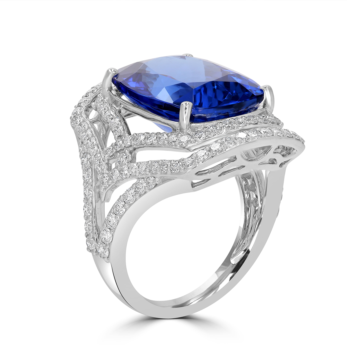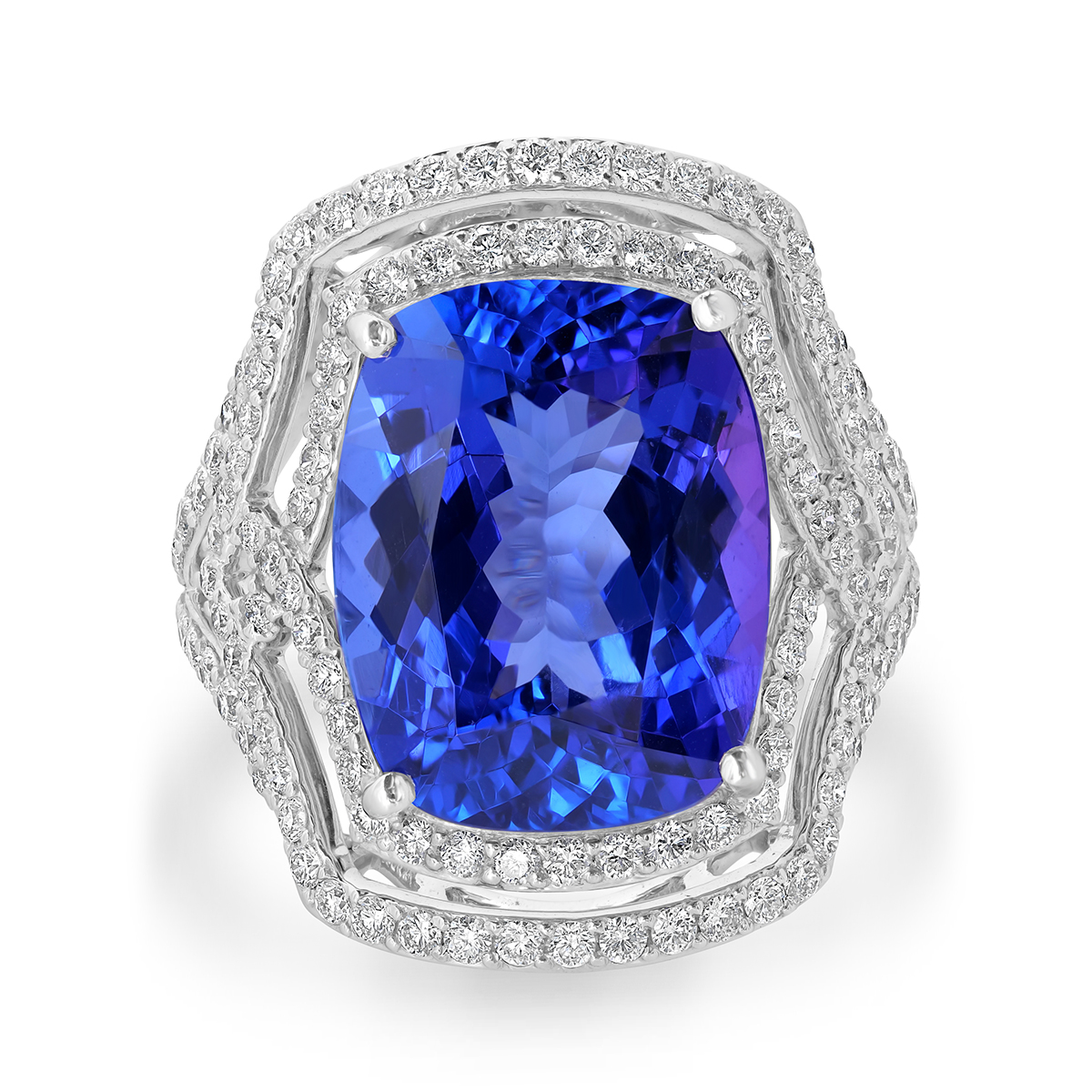 14K WHITE GOLD TANZANITE & DIAMOND RING